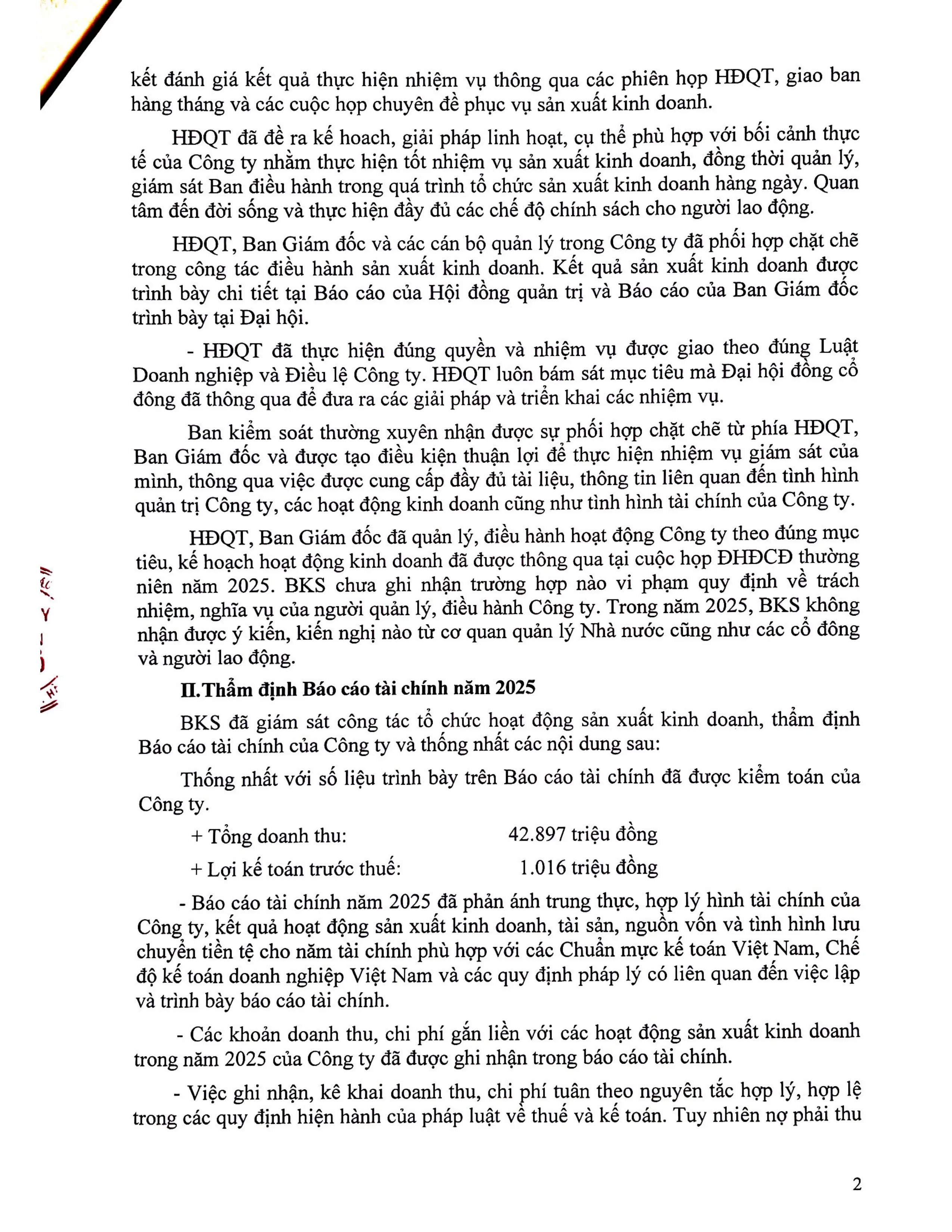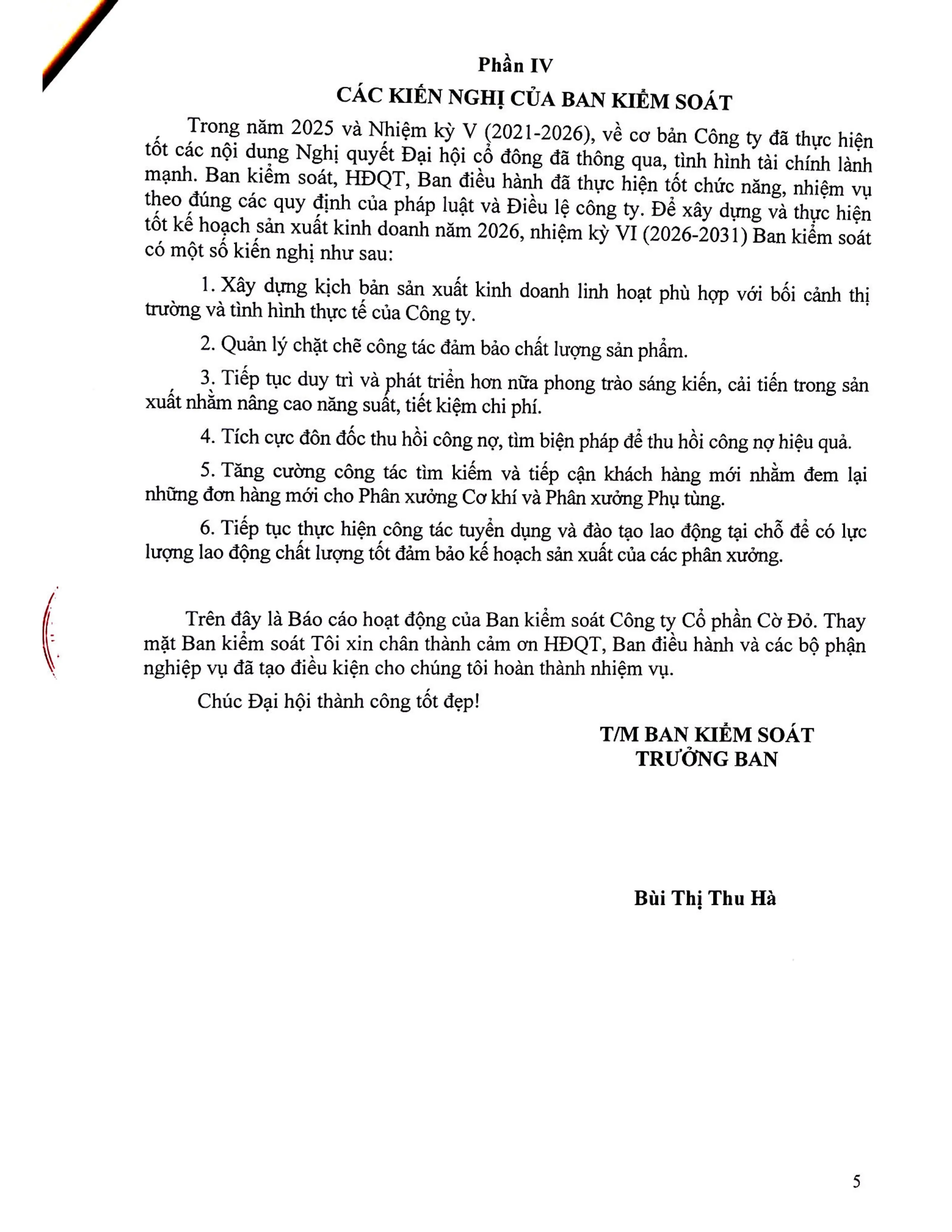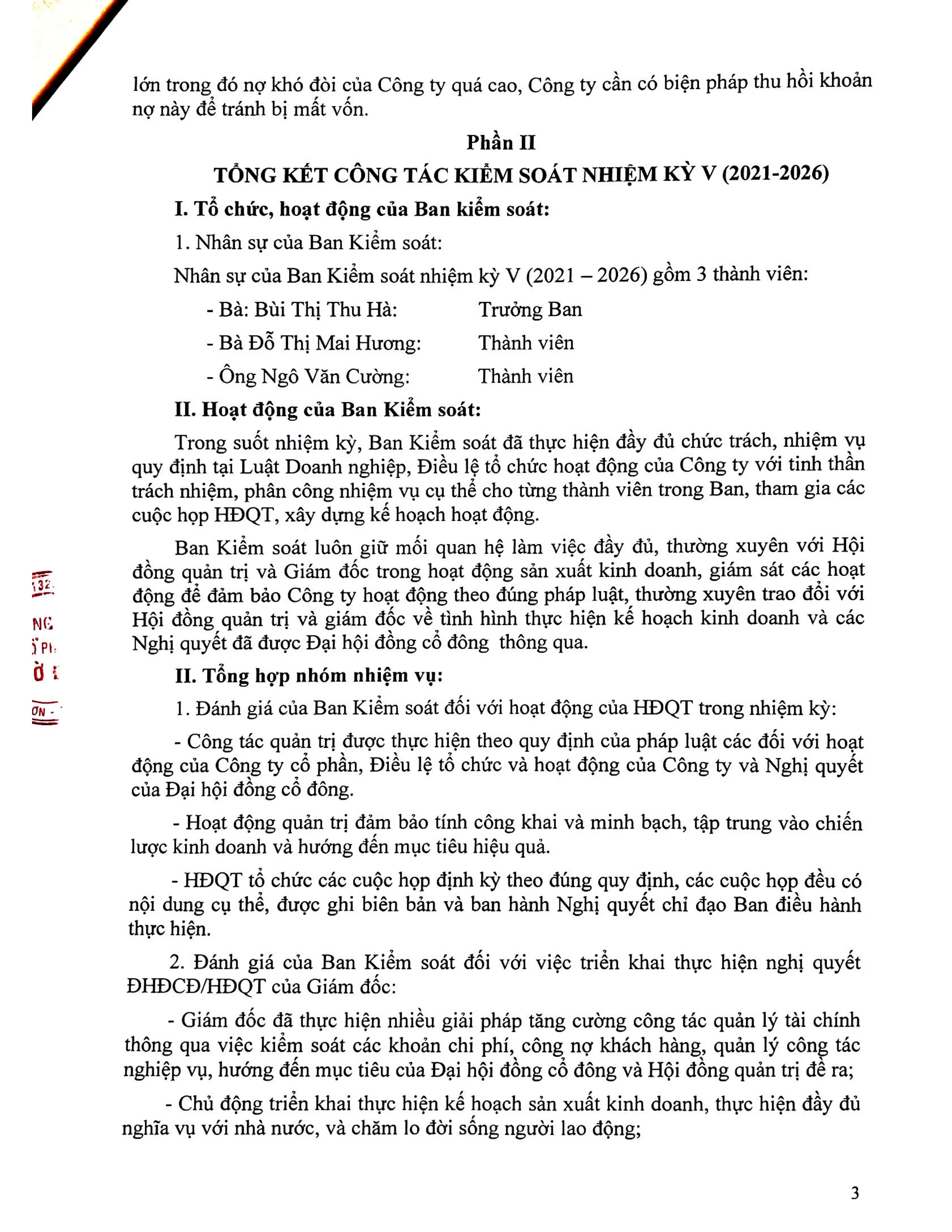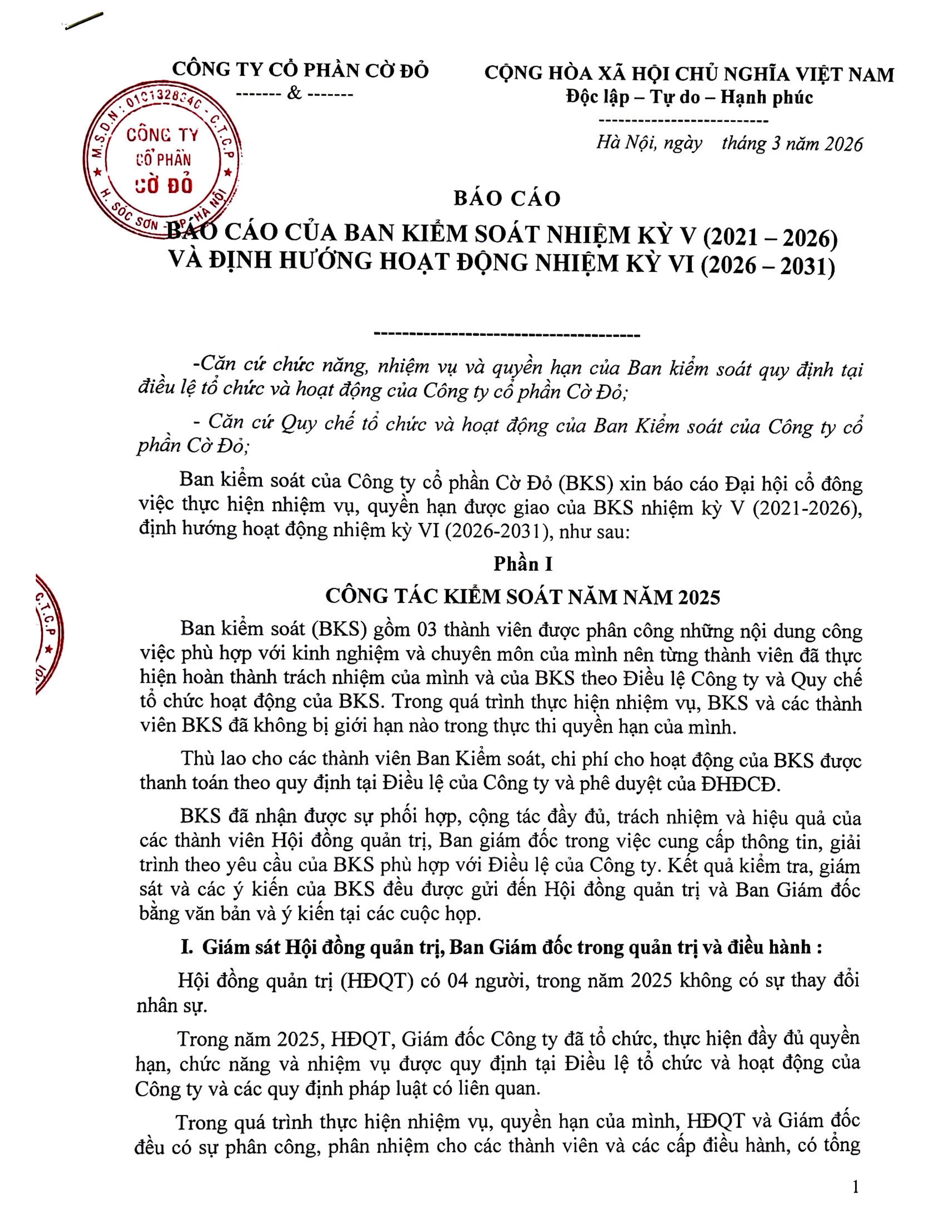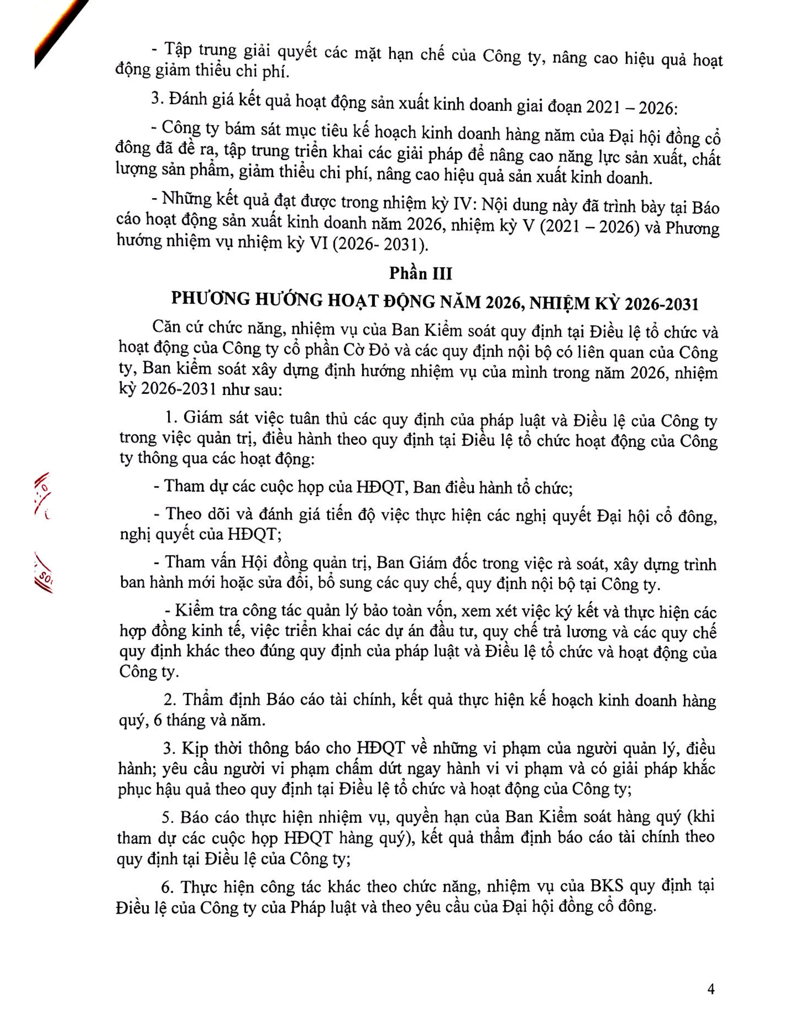 Báo cáo của Ban kiểm soát nhiệm kỳ V (2021-2026) và Định hướng hoạt động nhiệm kỳ VI (2026-2031)