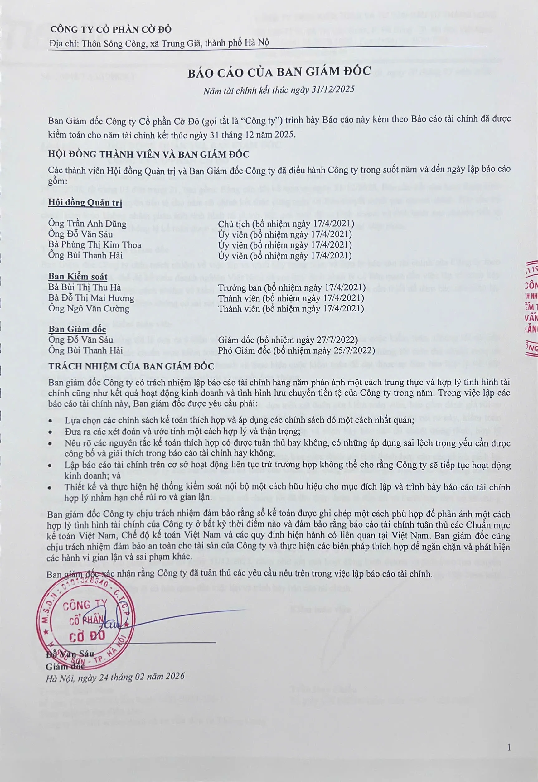 Tờ trình của HĐQT thông qua Báo cáo tài chính năm 2025 đã được kiểm toán