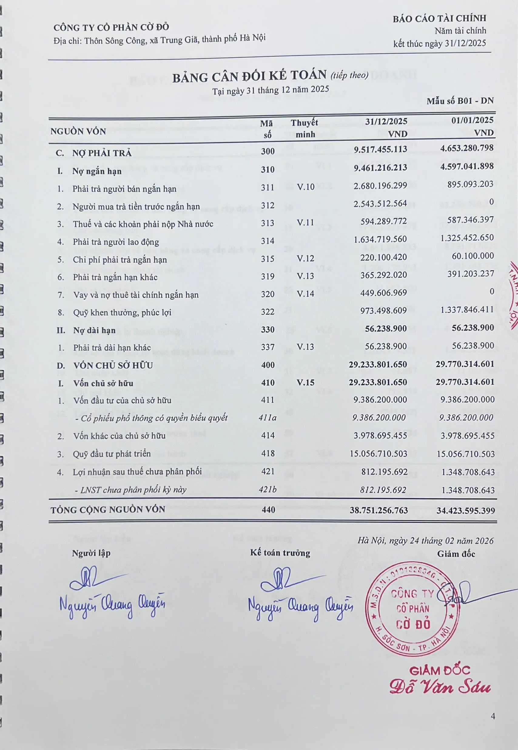 Báo cáo tài chính năm 2025 đã được kiểm toán