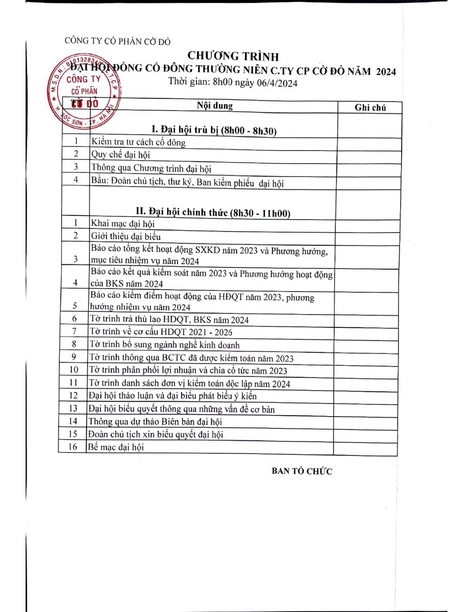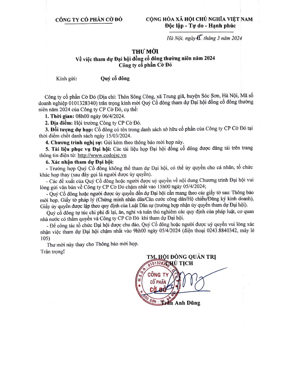 Thư mời tham dự Đại hội đồng cổ đông thường niên năm 2024