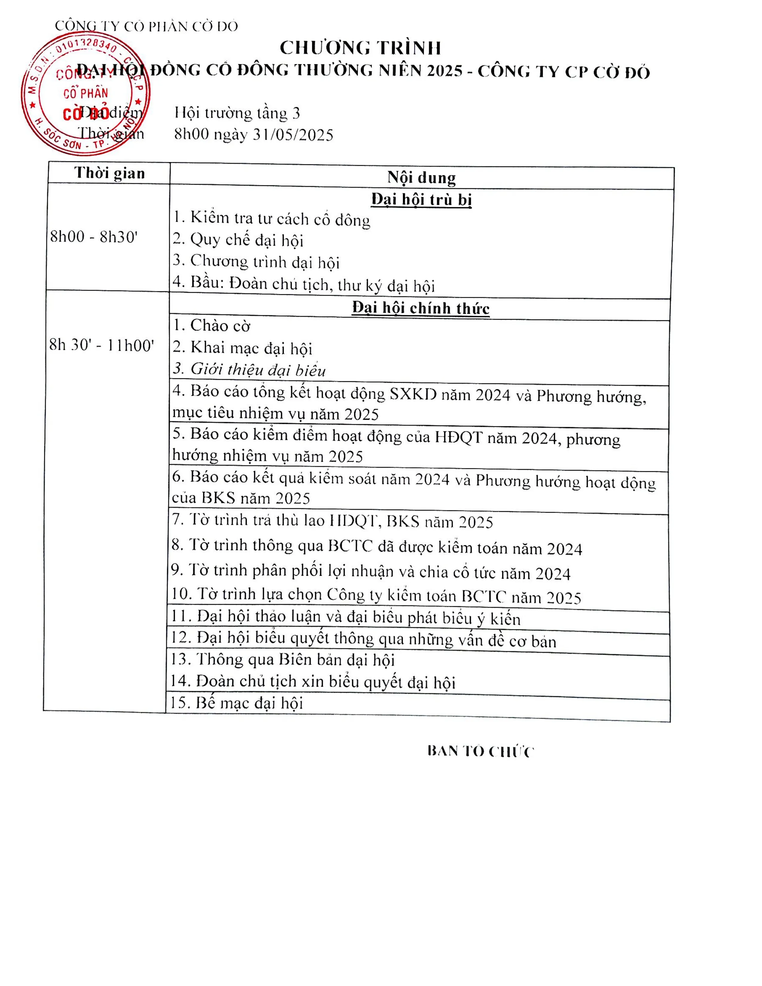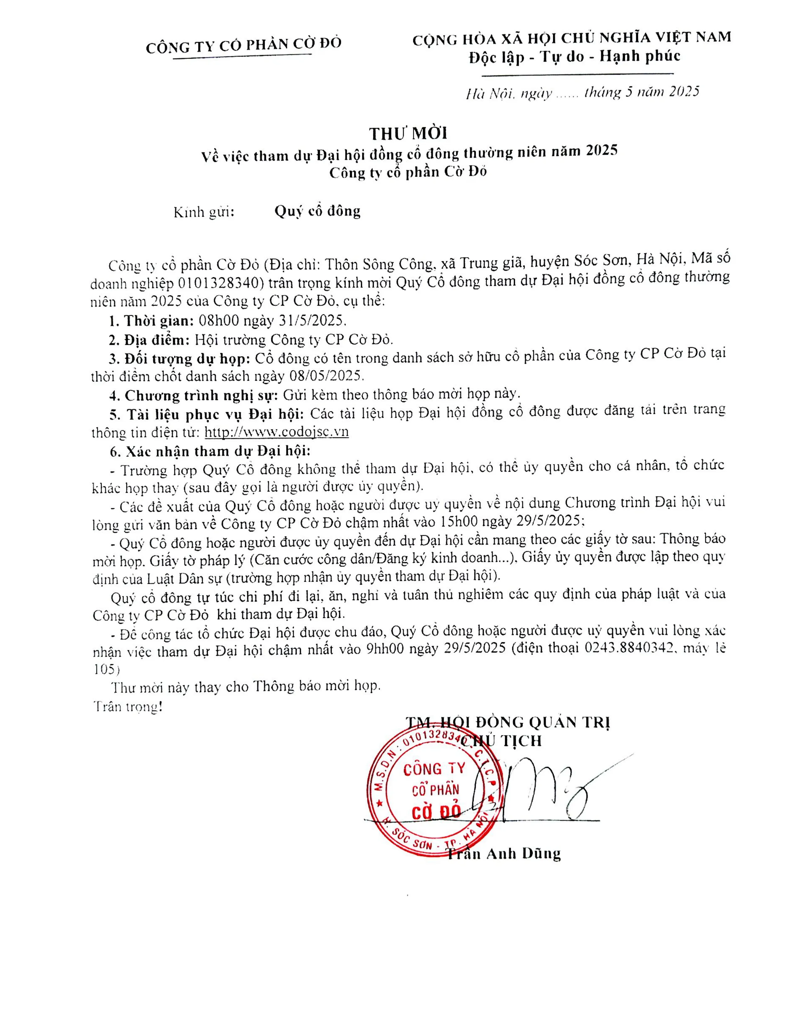 Thư mời tham dự và Chương trình Đại hội đồng cổ đông thường niên năm 2025